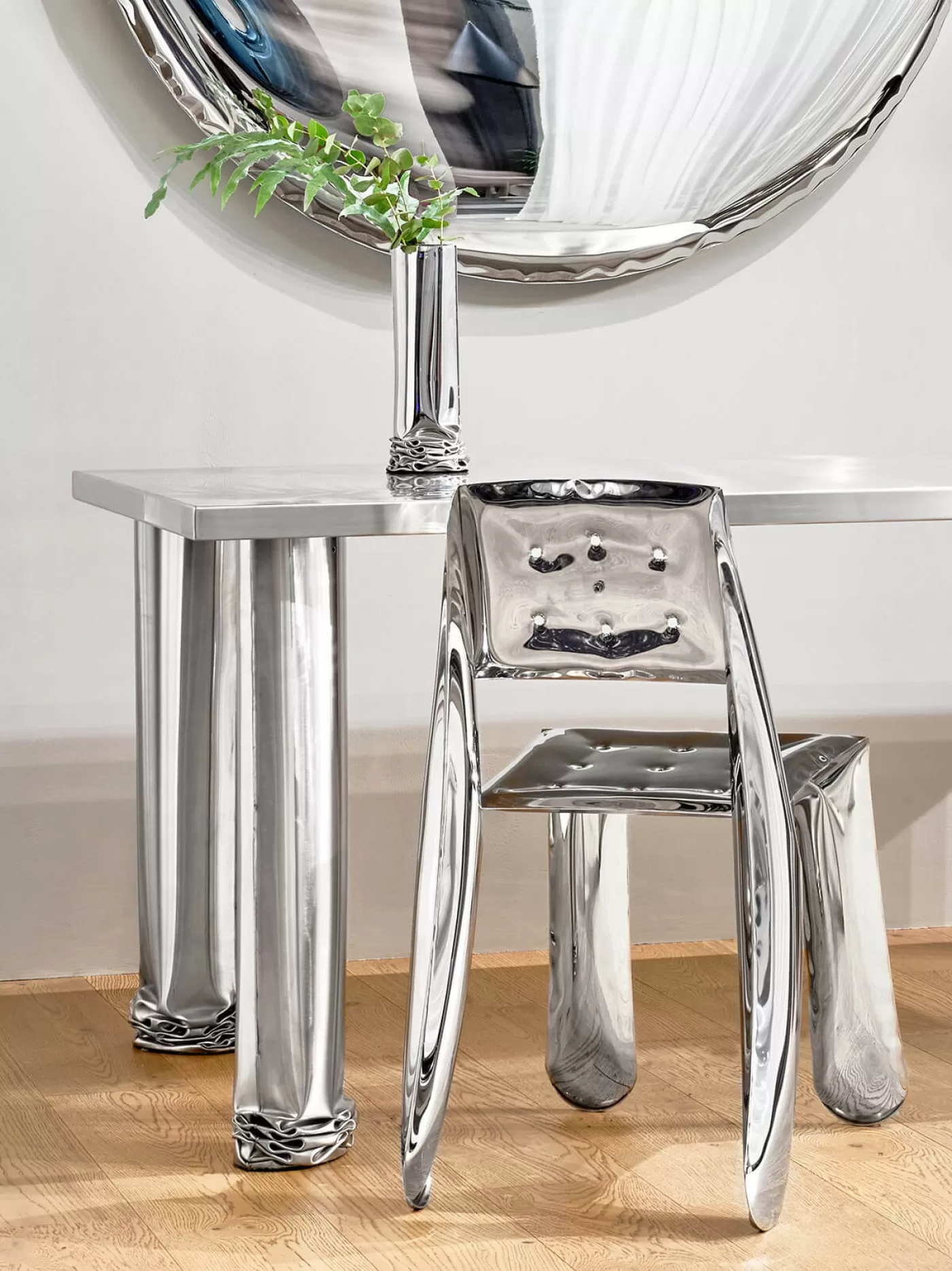 Zieta Chippensteel 0.5 – Stainless Steel (Inox), Polonyalı tasarımcı Oskar Zięta’nın Zieta Studio çatısı altında geliştirdiği yenilikçi bir sandalye modelidir. Endüstriyel tasarımı sanatsal bir estetikle birleştiren bu ürün, markaya özgü FiDU (Forming by Inner Pressure) teknolojisi ile üretilir. Bu yöntem, lazerle kesilen metal sacların kaynaklandıktan sonra içten hava basıncıyla şişirilerek üç boyutlu forma kavuşmasını sağlar. Böylece, heykelsi bir görünüm elde edilirken, şaşırtıcı derecede hafif ama sağlam bir yapı oluşur. Chippensteel 0.5, adını geleneksel İngiliz Chippendale sandalye stilinden alır ve bu klasiği paslanmaz çeliğin çağdaş yorumu olarak yeniden tasarlar. Ürün, cilalı paslanmaz çelik (inox) versiyonuyla dikkat çekerken; karbon çelik, alüminyum ve bakır gibi farklı materyallerde de üretilebilmektedir. Koleksiyonluk değeri ve mekâna kattığı heykelsi form ile öne çıkar.