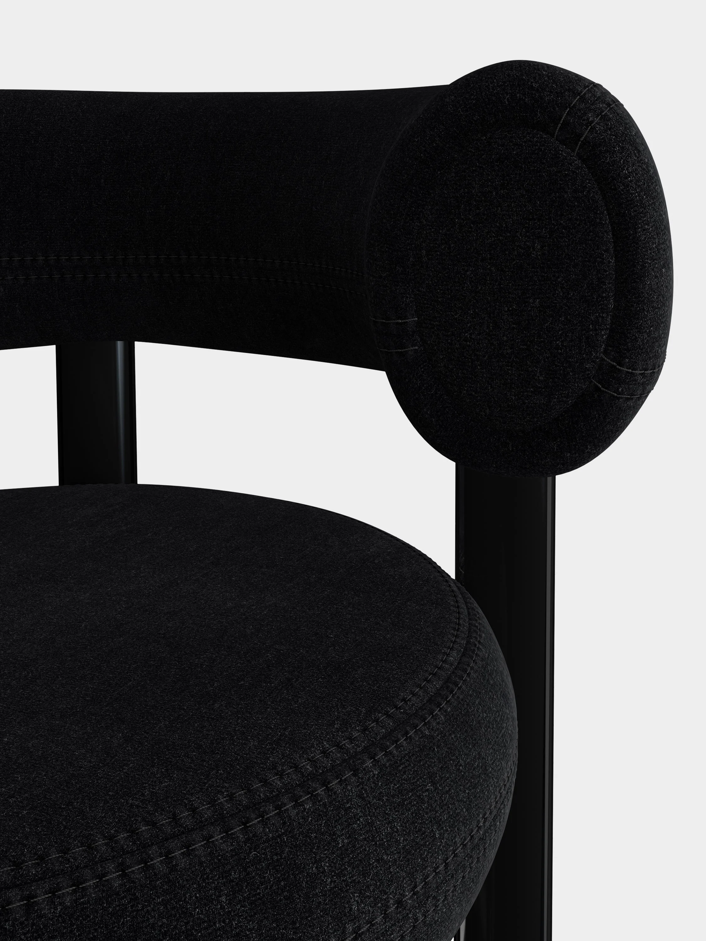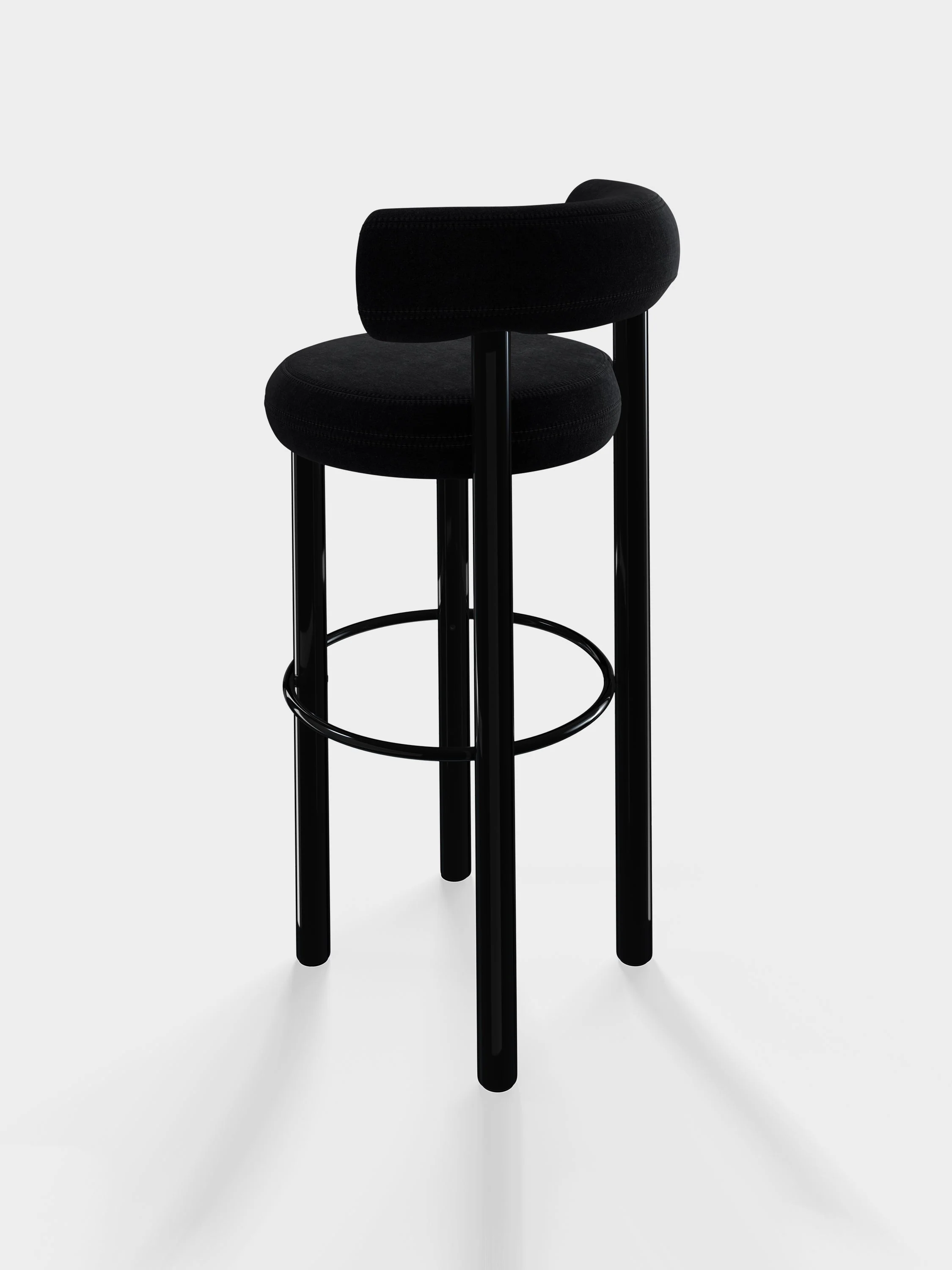 Tom Dixon Fat Bar Stool, kalıplanmış döşemesiyle konfor sunarken, metal veya ahşap ayak seçenekleriyle farklı mekan stillerine uyum sağlar.