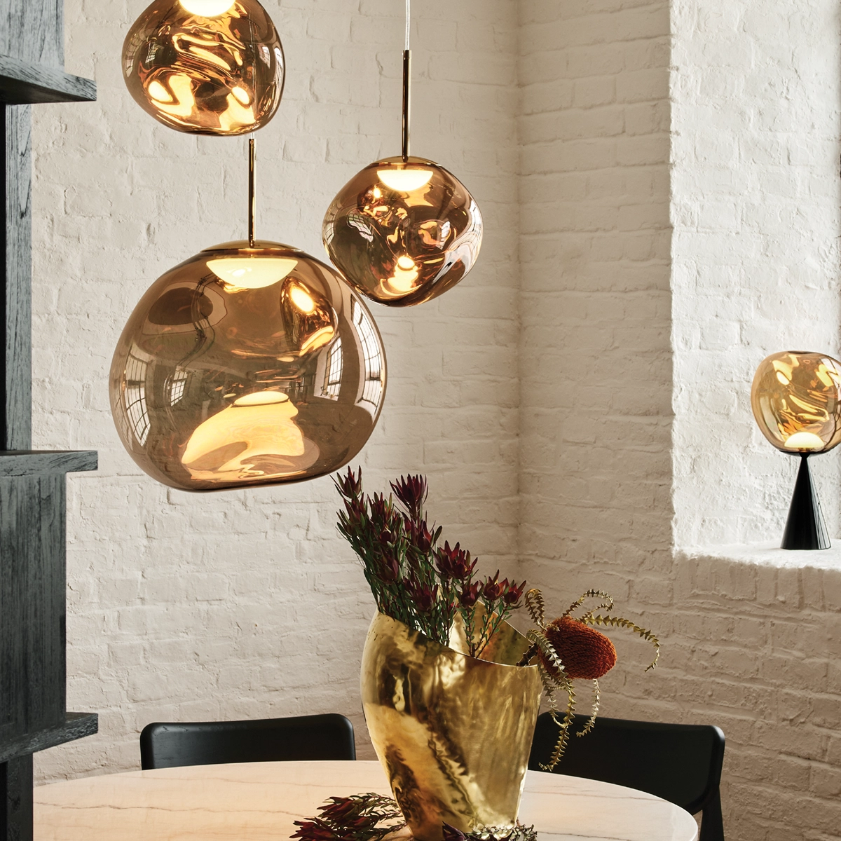 Tom Dixon Melt Pendant, eriyen metalin özgür formundan ilham alan benzersiz bir tasarım harikasıdır.