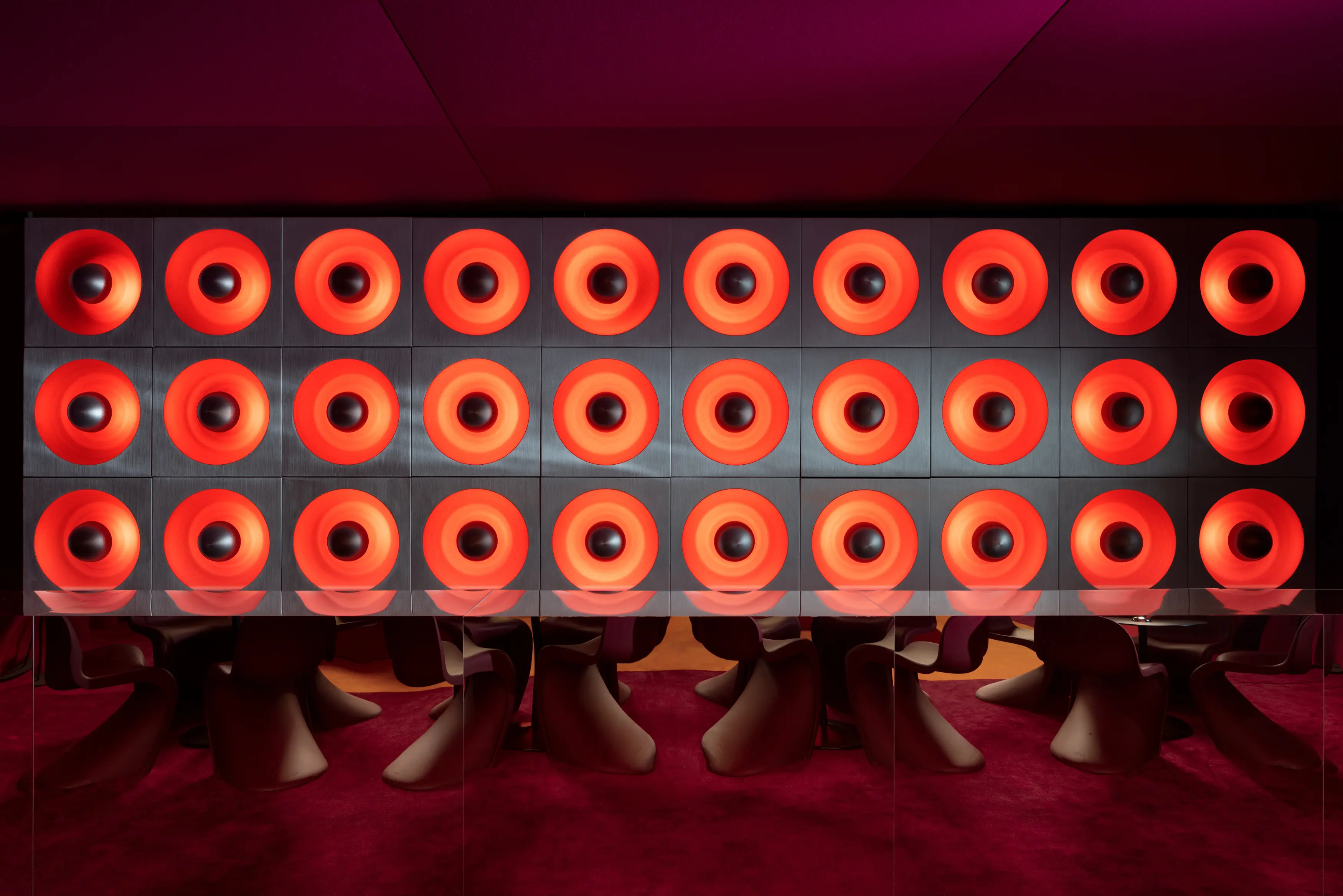 Verner Panton’un 1969 yılında tasarladığı Spiegel, sadece bir aydınlatma elemanı değil, aynı zamanda güçlü bir görsel ifade aracıdır. İlk kez Der Spiegel dergisinin Hamburg’daki merkez binasında kullanılan bu ikonik tasarım, hem duvar hem tavan kullanımına uygun yapısıyla öne çıkar.