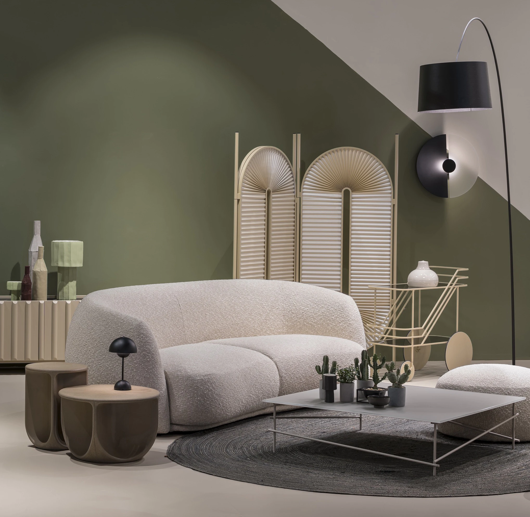 Organik formlar ve yumuşak tonlarla sade ama güçlü bir yaşam alanı kurgusu.